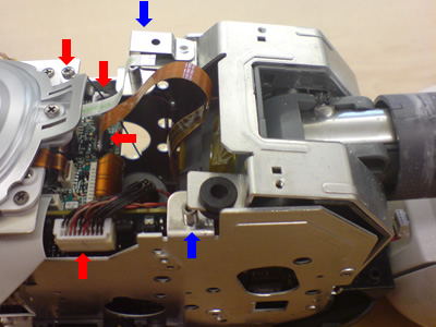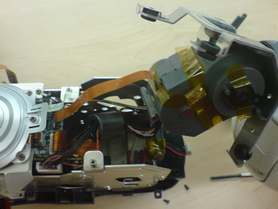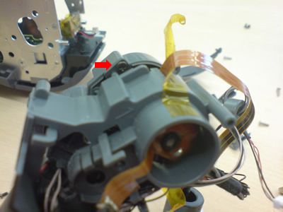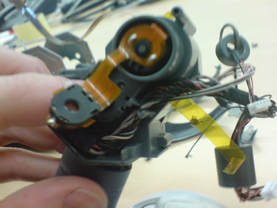 Carefully remove the shutter. Don't brake the bracket! Unplug the PSD sensor (plug shown on next picture).