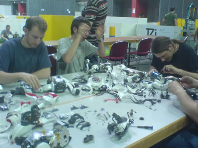 Reassemble everything. After adding the legs you can do a test run and see if the head is working fine or if you missed a plug or something. Don't be shocked. Although this might look frightening in the first place, it's a common procedure with some RoboCup teams and several robots have already been repaired successfully that way. You're welcome to ask any questions on this method and also send pictures of your work and defective parts. Jörg Zimmer |